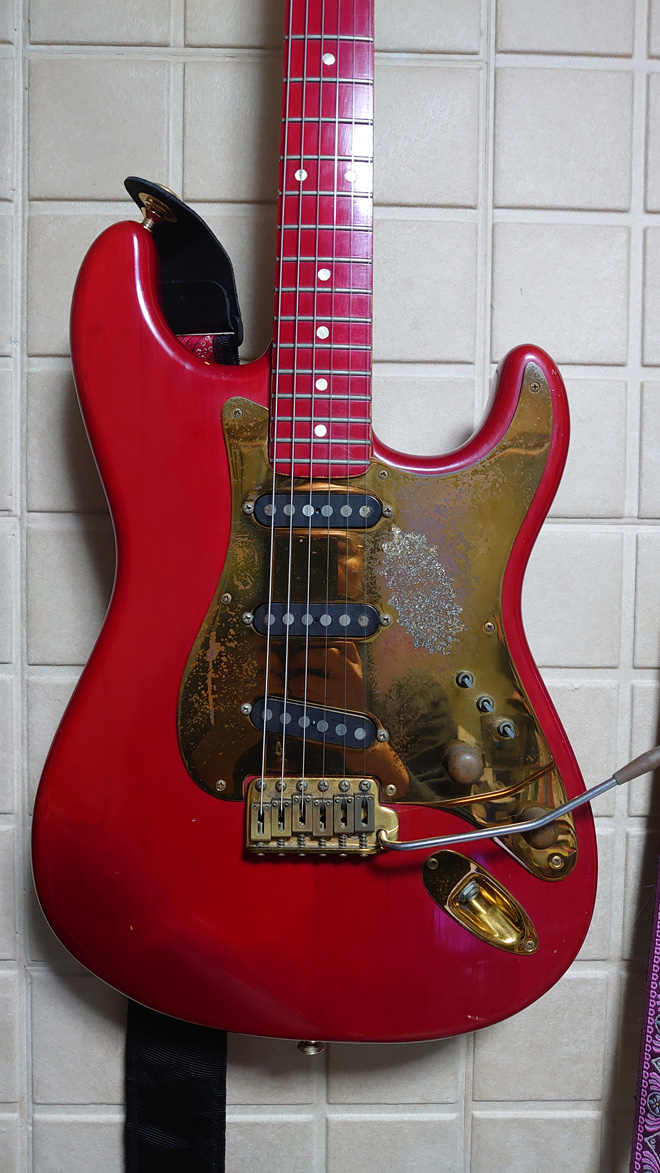 フレットは一度打ち替えました。ネックとボディは塗装がはがれ、ピックガードはサビサビで見た目は結構ボロボロになってきましたが、トラブルもなく現役です。