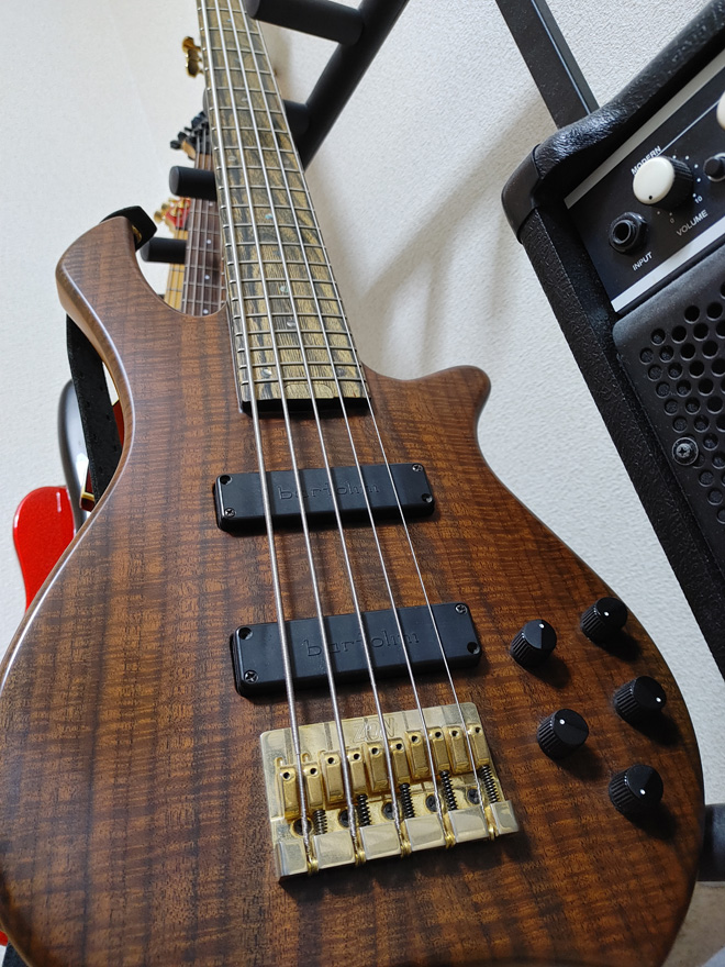 その後4弦ベースから5弦ベーシストになってた35歳の頃にデジマートでこれを見つけ、お店へ電話してキープして貰い、その日のうちに夜行バスを予約して東京へ行ったのを思い出します。とりあえず弾いてみるつもりでしたが、心の中では85%買う気でした(笑)