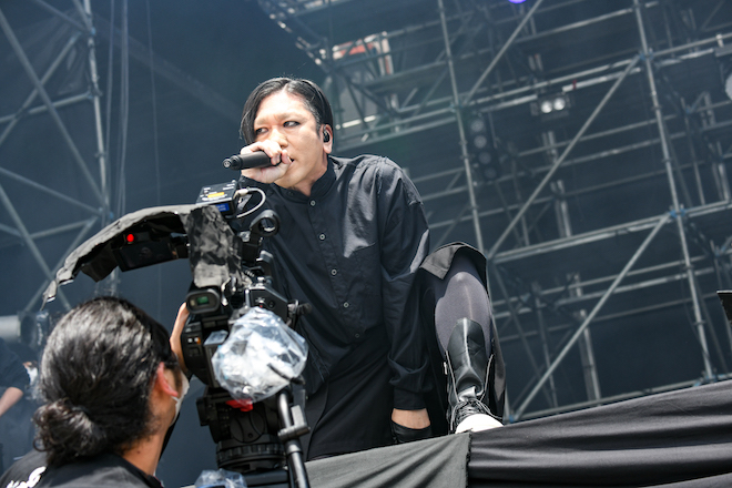 ライヴ中盤、「最高やんけ! 2年前、2日目の大トリから念願の一発目。きたぜ!」と改めて想いを語り、声を出せない、暴れられないオーディエンスに向かって「各々の気持ちはわかってる。お前らの気持ち、この2日間のバンドたちが全部代弁するから!」と宣言するN∀OKI。もちろん、他のバンドに確認するような野暮な話ではなく、この<SATANIC CARNIVAL ’21>に出演するバンドでそう感じないヤツらなどいないという確信からの言葉だろう。そう語る姿は本当に美しかった。