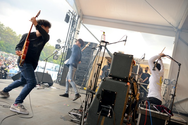 そして、「これから先の未来へ繋がる時間にしよう!」と笠原が呼びかけ、「NEVER ENDING STORY」が炸裂。サビのフックはもちろん、キラキラと輝くメロディックのエネルギーを青空に全放射する様は最高に気持ち良かった。けれど楽しい時間はあっという間に終わるものだ。「NOTHING BUT MY HEART」を経て、笠原が名残惜しそうにMCを入れた後、ラストは「STAY YOUTH FOREVER」を投下。「ウォー!ウォー!」というシンガロング・パートにより、ここに集まった大勢の人たち拳を突き上げ、揺るぎない一体感を作り上げて終了。すべてを出し切った全身全霊のパフォーマンスにひれ伏した。
