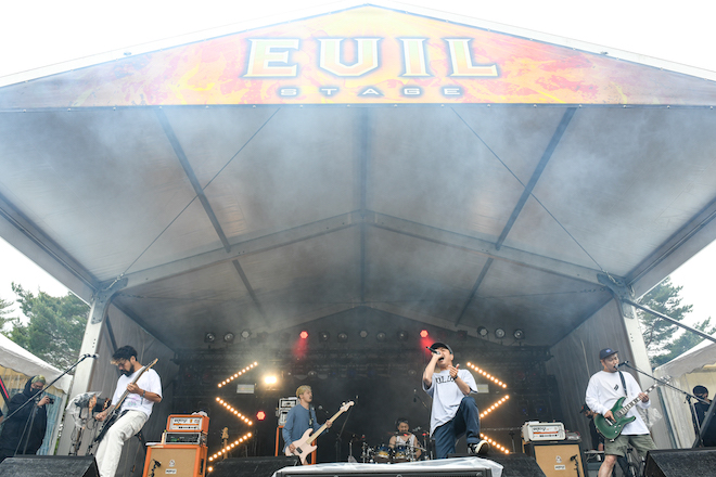 一瞬も気を抜くことなく、たっぷりの感謝と気合いを込めながら、曲を叩きつけるSHADOWS。そのすさまじさに刺激され、熱狂の客席エリアと化すEVIL STAGEとなった。