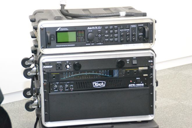 KATSU:これはレコーデイングでも使う、ラックマウントのFRACTALのエフェクターをコントロールするスイッチボードです。ラックについては、電源ケーブルも特別にカスタマイズしてもらったものを使っています。音が良くなるのはもちろんですが、ディスプレイが明るくなる(笑)。これは驚きでした。実はこのラックにも僕のこだわりが詰まっているので、話始めると長くなってしまうんですよ。機会があればぜひこの話をじっくりと(笑)。