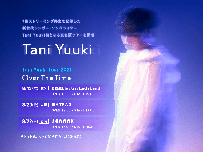 Tani Yuukiによる初ワンマンツアー<Tani Yuuki Tour 2021 “Over The Time”>の開催が決定した。