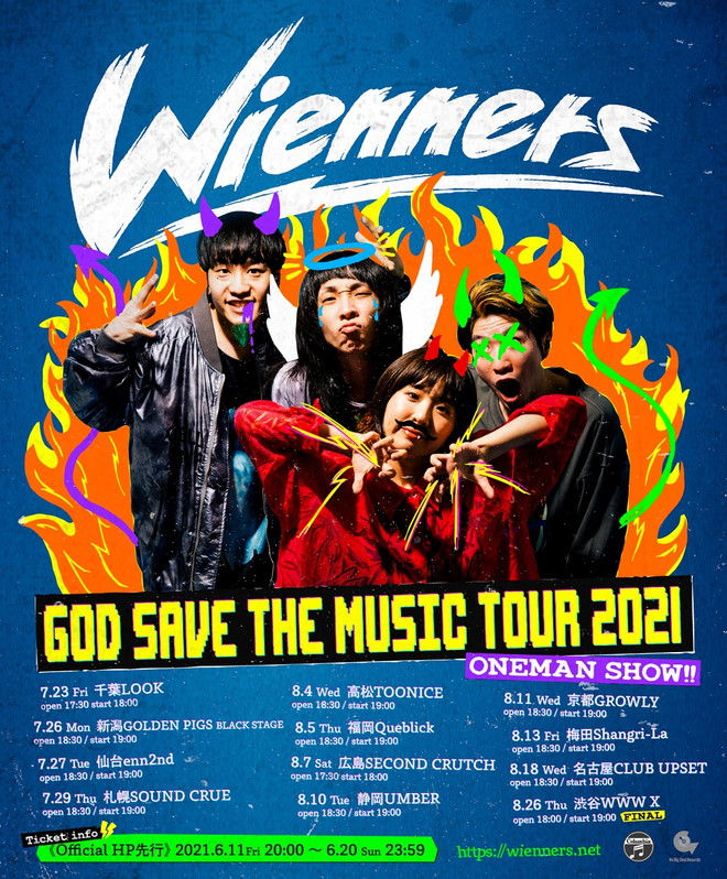 Wienners、全国12箇所を巡るツアー<GOD SAVE THE MUSIC TOUR 2021>開催決定