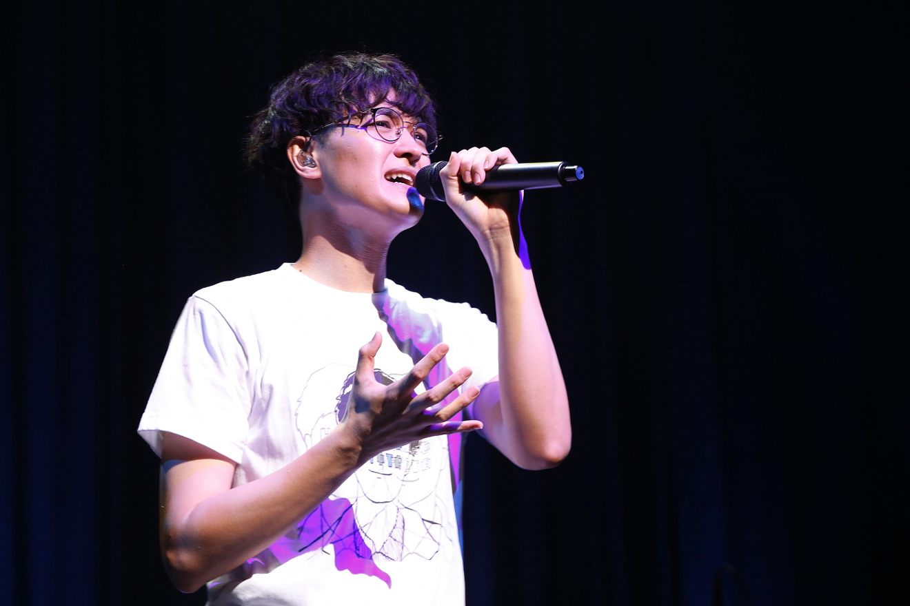 途中、自身が出演するYouTubeの偏見コメントがきっかけで生まれた、SNS時代の匿名コメントに一石を投じたメッセージソング「サイコパスのうた」を、バンドセットで初ライブ披露すると、会場からはこの日一番の拍手が沸いた。