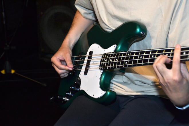 栗田:歪んだ音で8分音符をずっと弾くというのが基本にありつつ、3ピースバンドなのでベースでも空間を埋める、というのが自分の中では醍醐味というか、やっていて楽しいことですね。メロディをガンガン弾いてもらっている間、ずっと8分音符で歪みと低音だけで押さえていく、そういうところをもっと深めていけたらいいなと思っています。