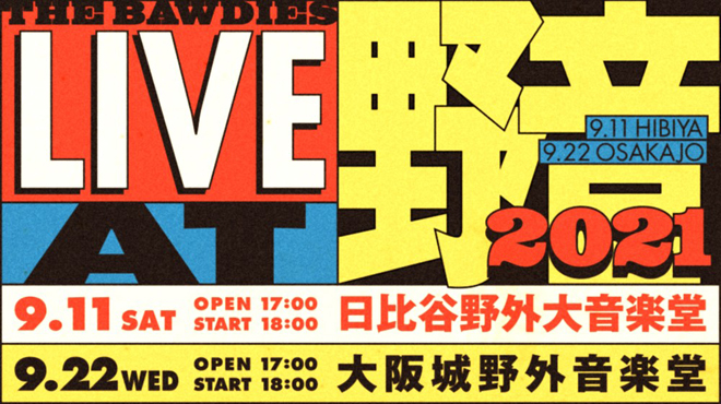 THE BAWDIESが、2016年以来約5年ぶりとなる東阪野音での公演<LIVE AT YAON 2021>を開催することが決定した。