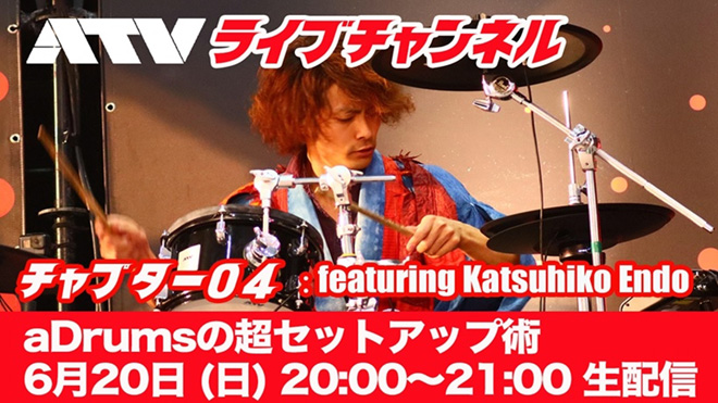 ATV電子ドラムの魅力を様々な情報から届けていくYouTubeチャンネル『ATVライブチャンネル』にて、6月20日(日)20:00よりライブ配信が行われる。今回のテーマは「aDrumsの超セットアップ術」だ。