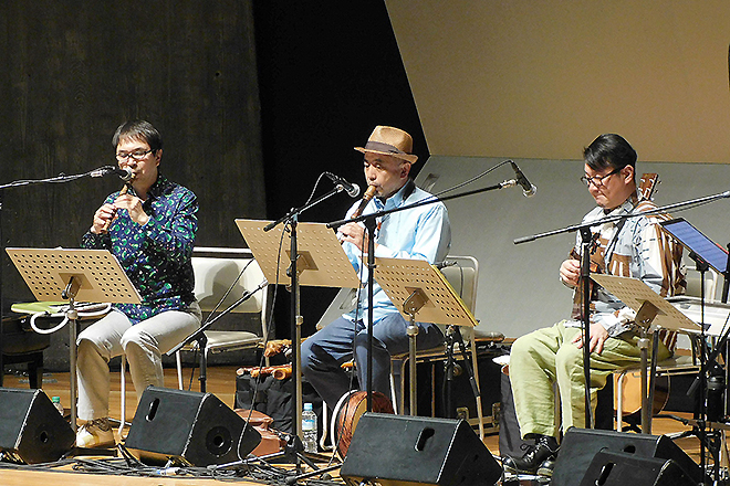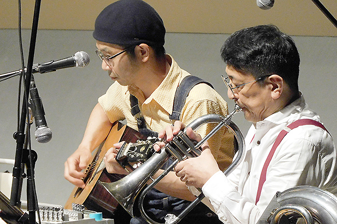 映画『コクリコ坂から』挿入歌として手嶌葵に提供した「朝ごはんの歌」は、ジャズ調で軽快に。「ウミガメスープ」「向こう側の王国」「きれいな石の恋人」などファンタジー色の濃い楽曲はリコーダー、鍵盤ハーモニカ、アコースティックギター、チューバなど様々な楽器のアンサンブルで、不思議な無国籍感たっぷりに。演奏は精密だが合間のトークは和気あいあいでゆるく楽しく、栗コーダーカルテットが3人でも5人でも“カルテット”である理由が明かされたり、川口がかつて谷山浩子「そっくりハウス」の譜面の間違いに気づかず演奏していたことが暴露されたり。明るい笑いの中で楽しい時間が過ぎてゆく。