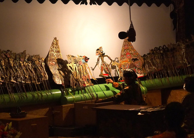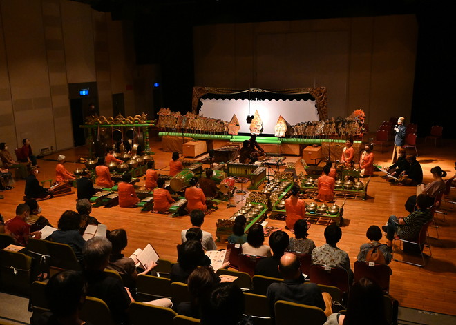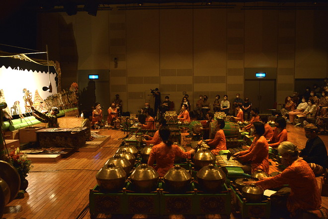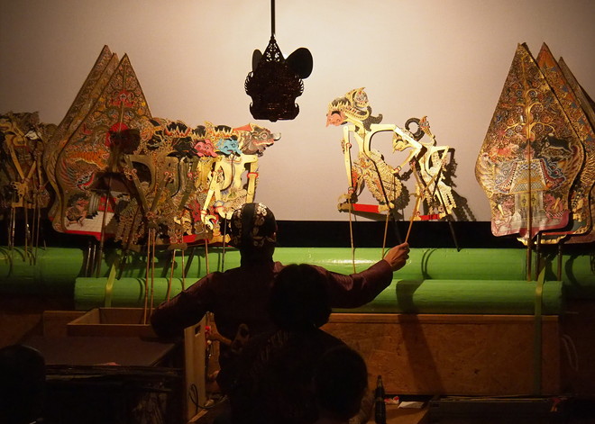 今回の公演では、影絵芝居“ワヤン(ワヤン・クリ)”が行われた。ワヤンはユネスコ無形文化遺産にも登録されているインドネシアの伝統芸能。“影絵芝居”自体は日本人にとっても藤城清治の作品などで親しみのあるものだが、ワヤンではガムランを伴奏に、「ダラン」と呼ばれる人形遣いがひとりで全ての人形を操り、語りや効果音、歌声も披露する。