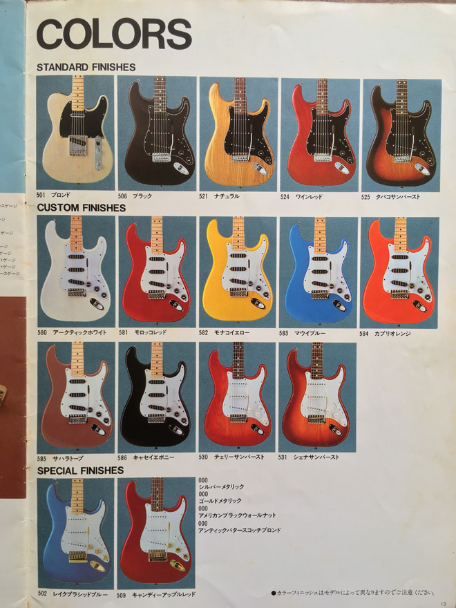 青春の80年代にフェンダーのカタログを食い入る様に見ながら、インターナショナルカラーの素敵な色に憧れていました。カプリオレンジなんて、本当に可愛い色で!やっぱりアメリカ製は違うな~なんて、興奮していました。