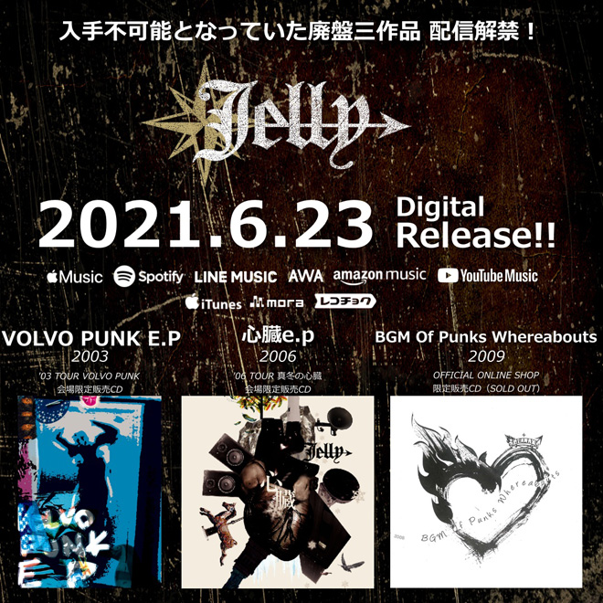 本日のライブが中止となってしまった代わりとして、急遽配信リリースが決定。2003年のツアー会場限定販売EP『VOLVO PUNK E.P』、2006年のツアー会場限定販売EP『心臓e.p』、2009年のオフィシャルサイト限定販売ベストアルバム『BGM Of Punks Whereabouts』を各ダウンロード、サブスクリプションサービスにて楽しむことができる。