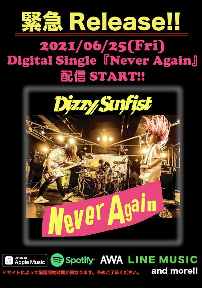Dizzy Sunfistが、6月25日0時に“今だからこそできた”新曲「Never Again」を緊急配信リリースする。