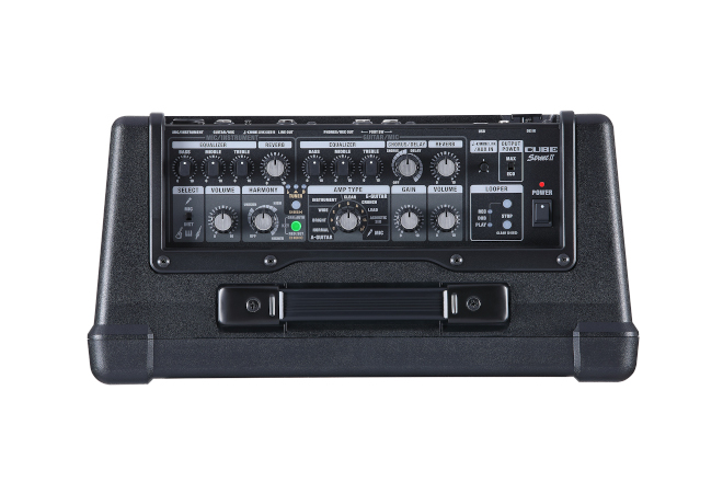 『CUBE Street II』の最大出力は、従来機種に比べて2倍の10W(5W×2)にパワーアップ。人通りの多い場所でもクリアでパワフルなステレオ・サウンドを出力。ABS樹脂筐体により堅牢性も大きく向上、また重量も4.4kgと軽量化。「MIC/INSTRUMENT」チャンネルには、新たにハーモニー機能を搭載。演奏するギターのコード進行や設定したキー(調性)をもとに、美しいボーカル・ハーモニーを自動的に生成できる。また新搭載のループ機能により、演奏をリアルタイムに重ねていく即興的なパフォーマンスを手軽に行える。「MIC/INSTRUMENT」「GUITAR/MIC」チャンネルにはそれぞれ専用の3バンド・イコライザーを搭載しており、細かな音色調整が可能だ。