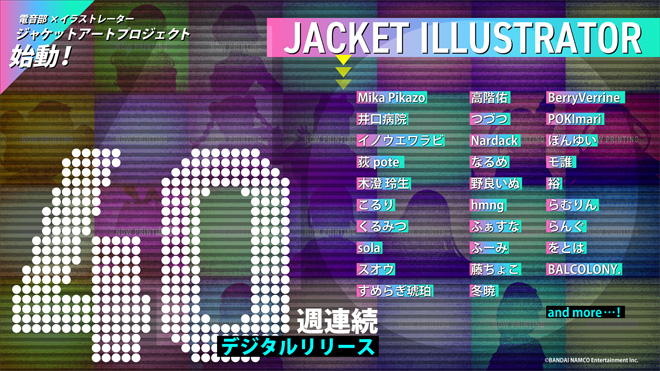 この企画は、5月よりスタートしている第1弾企画「40週連続デジタルリリース」の楽曲とあわせて、気鋭のイラストレーターによる描きおろし配信ジャケットアートを公開するというもの。公開日時は、毎週金曜日の深夜24時(土曜日0時)を予定している。