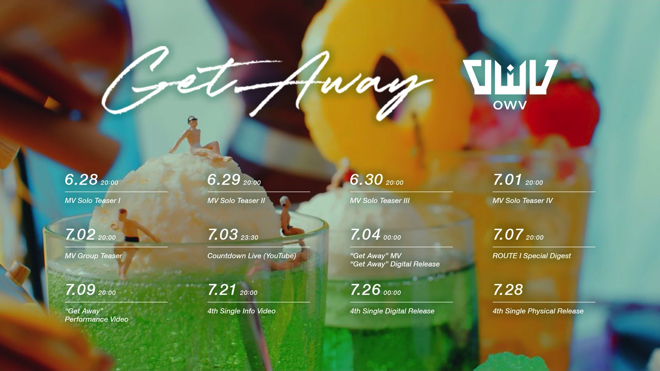 OWVのニューシングルから、表題曲「Get Away」が7月4日(日)午前0時に先行配信されることが決定した。YouTubeでは同時刻にミュージックビデオがプレミア公開されるという。