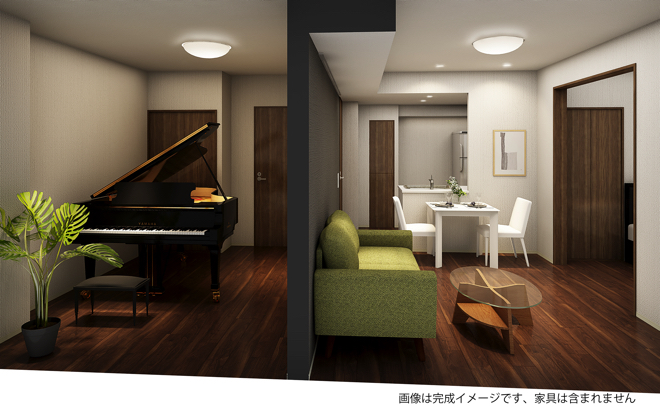 「ミュージション」は、都市部の集合住宅においても隣近所を気にすることなく、楽器演奏や音楽鑑賞を楽しむことができるという賃貸住宅だ。風通しや採光など快適な居住性にこだわりながら高い遮音性能を両立しているのが特徴で、ミュージシャンや音楽大学生、YouTuber、DTMer、音楽教室開校希望者などからも支持を得ている。