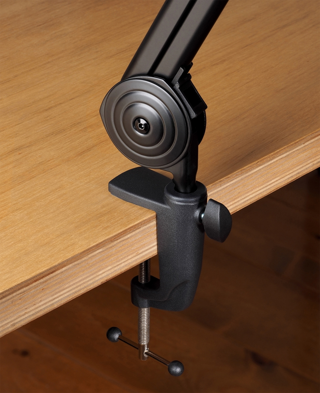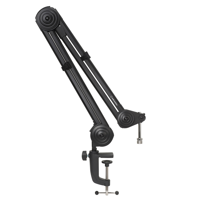 本製品は、最大50mm幅までのデスクやテーブルに取り付け可能で、重さ2kgまでのマイクロホンと一緒に使用することができる。デスクの上にマイクロホンやマイクスタンドを設置する必要がなくなるため、自宅で作業しながらのレコーディングやポッドキャスト、動画配信をされる際に使い勝手の良い製品と言える。使用しないときは、コンパクトに折りたたんでおける省スペース設計を採用。さらに、ケーブル止めファスナーも付属し、マイクロホンケーブルを美しくレイアウトすることも可能だ。