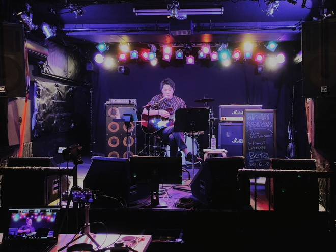 真田ナオキが6月18日、25周年を迎えた姫路のライブハウス・Betaから配信ライブを行った。