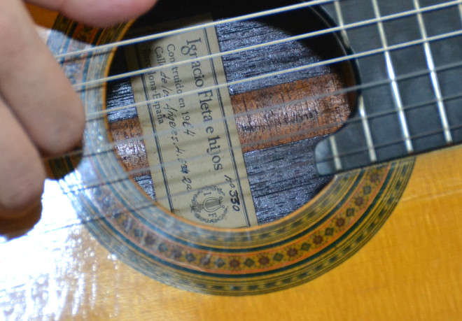 鈴木:これはイグナシオ・フレタ。泣く子も黙る名機です。その中でエ・イーホス(e Hijos)、つまり息子と一緒に作ったというモデルですが、これは1964年の楽器なので、ほぼフレタ一世がデザインしたものですね。僕は昔からフレタが大好きで憧れていました。でも、ビンテージの楽器はつねに弾いて鳴らしてあげないといけないし、コンディションも気候や季節に左右されるから難しいので、あまり手を出そうとしていなかったんです。でも2009年くらいに、良いのがあるよと言われて見てみたら、ホントによかった。それでちょっと無理して買ったんです。