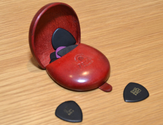 鈴木:たとえばクラシックギターでも、タンゴだとピックで弾かなきゃいけないときがあるんですが、そういうときは分厚いピックがすごく使いやすいんです。エレキはカッティングとかがあるので、それよりは少し薄めのピックを使います。