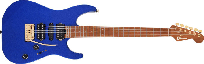ミスティック・ブルーカラーを纏ったアルダー材のDinkyボディに、グラファイト補強材を埋め込んだボルトオン式キャラメルメイプル“スピード”ネックを組み合わせ、背面は滑らかなサテンウレタン仕上げを施し、Luminlayのサイドドット、ヒールマウントのトラスロッド調整ホイールを採用。ブリッジピックアップにSeymour Duncan Full Shred SH-10B、ミドルピックアップにSeymour Duncan Custom Flat Strat SSL-6シングルコイルピックアップ、ネックピックアップにSeymour Duncan Alnico II Pro APH-1Nハムバッカーを採用したHSHピックアップコンフィギュレーション。ブリッジピックアップは、タイトなローエンドと伸びやかなハイエンドの明るいトーンを発し、ネックピックアップは、独特の温かさとナチュラルなサスティーンが特徴。