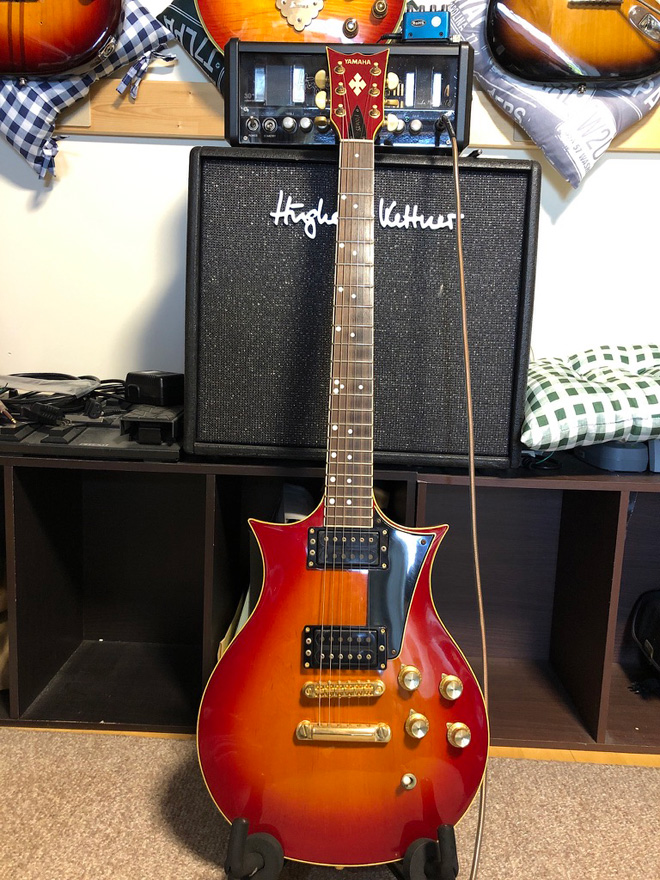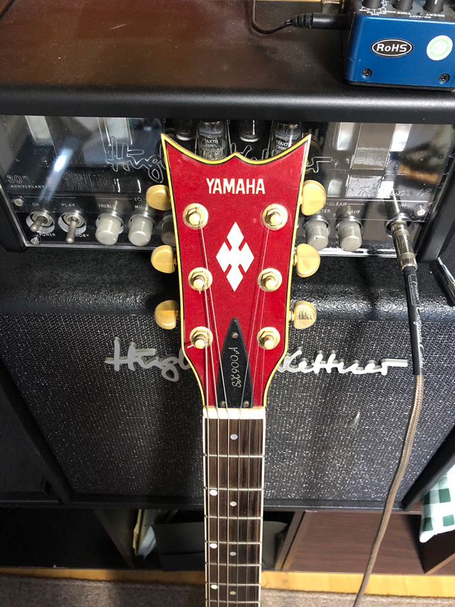 今更ながら、こうやってしみじみ見ると、遠慮なく個性を全面に出した佇まいがめちゃくちゃかっこいい。当時はもちろん、今見てもこんなアグレッシブで攻めたデザインってなかなかないですよね。ヘッドもいかす。当時押しだったシングルではなく2ハムというところもナイス。コイルタップはYAMAHAはバイサウンドシステムって言ってましたよね。SX欲しーい。てか、SG1000もお持ちとのことですが、SC-1200も持ってんじゃないっすか。ずるい。写真に写っちゃってますよ。(JMN統括編集長 烏丸)