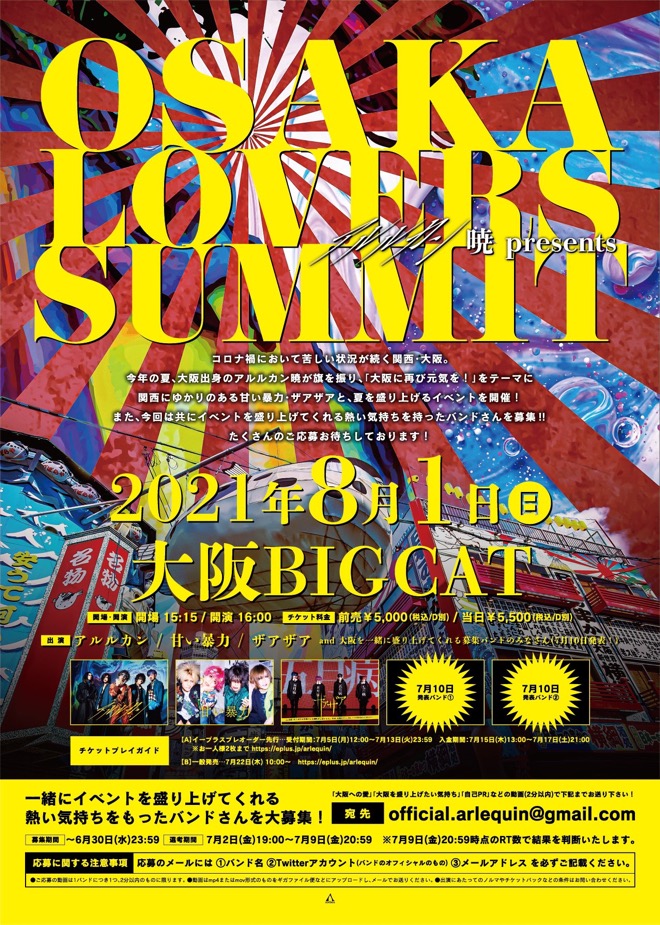 アルルカン / 甘い暴力 / ザアザア / and…大阪を一緒に盛り上げてくれる募集バンドのみなさん(7月10日発表)