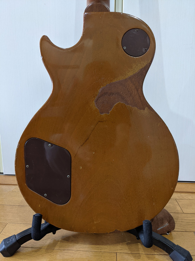 この個体は54年そのものではありません(そもそも買えねーよ)おそらく70年代前半の再生産モノです。なのでネックはゴリっとした太めではなく普通のシェイプです。またリフレットされていて、もう実戦向きですわ。