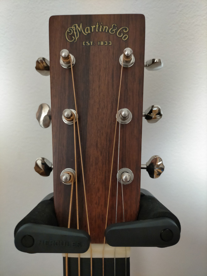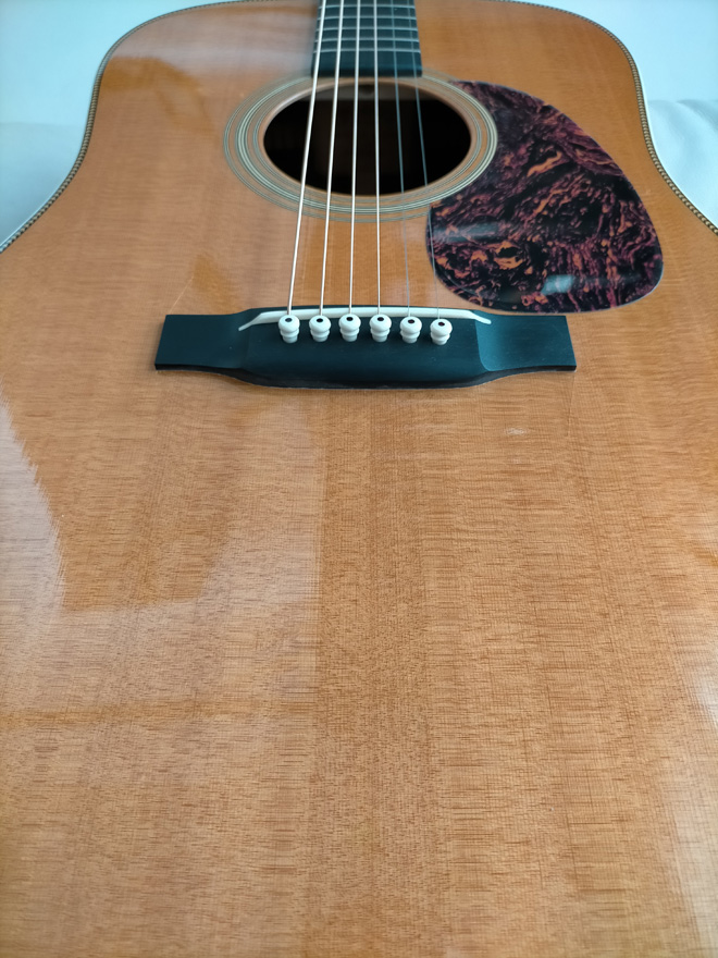 まさに鈴が鳴るような中高音。一つ一つの音の分離感からくる和音の立体感。たまりません!!フォワードシフテッド・スキャロップト・Xブレーシング、ヘリンボーン、ダイヤ型のインレイ…なんかよく分からんけど、Good!ペグの裏側は歯車出てて、これもよく分からんけど、かっこいい。ハードケースから出した時の、特有のあまーい香り。いや、ほんと、たまりません。