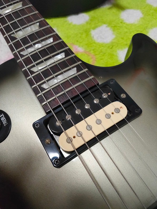 まずは邪悪な音を求めて、リアピックアップをビルローレンスに自分で交換(この段階では半田ごて触ったことなし。)次にフロントをスラッシュモデルに交換して、いい具合になりました。