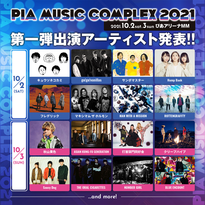 ぴあが主催する音楽フェスティバル<PIA MUSIC COMPLEX 2021>が、10月2日(土)、3日(日)に神奈川・ぴあアリーナMMで開催されることが決定した。