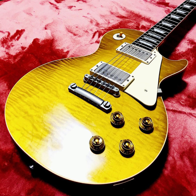 悲しいストーリーなので、59リイシュー買えてよかったねと言っていいのか、ちょっと困った。いや、こんないいギターと巡り会えたのも彼女のおかげか。いずれにしろ、すげーいいギターであることは間違いない。この理想的な板目、うねるようなグレイン、かっちょいいレモン…完璧な逸品だもの。これはいいよ。しかもクラックこそないもののライトエイジドでしょ?写真だけで三杯いけます。(JMN統括編集長 烏丸)