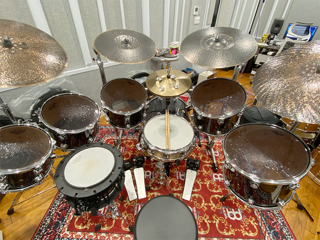 ミドルペダルとセンターハットの組み合わせは色々と合理的だと思うのですが、転換が大変なので外に持ち出す機会がほとんど無いという残念さ。Bill Brufordっぽいと言われることもありますが、toolのDanny Careyとか元oceansize現bingeのMark Heronあたりの影響が大きいです。