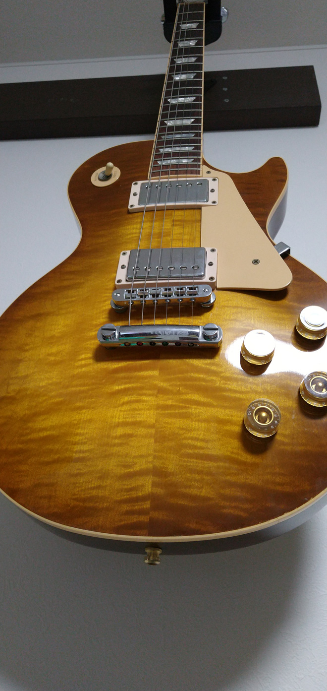 とにかく、憧れのGibsonのレスポールが欲しい!ってことで池袋の某楽器店で見つけた1本です。確か98年位にマイナーチェンジでペグが変わってるモデルだったと思います。その後割と直ぐに元のペグに戻っちゃいましたが。