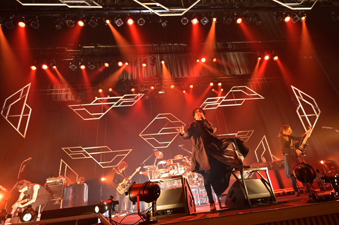 オープニングSEから激しくライトが点滅する近未来的なセットと観客の手拍子が合わさり会場が充分に温まったところでメンバーが堂々と登場。このツアーを語るうえで欠かせない楽曲の一つである「ULTIMA」でライブの幕を開けた。