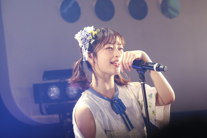 中盤パートでは、「わたし色のトビラ」「スーパースター」「axis」「スマイルフラワー」「Don‘t Blink」と5曲続けて披露。順番に続いていくカノンの振り付けが印象的な「わたし色のトビラ」で視線を集めると、「スーパースター」では一気にファンは聴き込むモードへと。