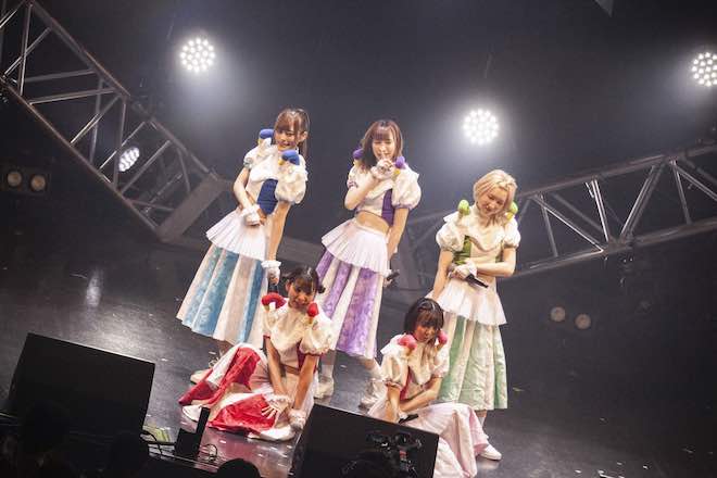 畳み掛けるように、「そばにいてよ Baby angel」「らぶ地球」と アッパーなダンスチューンを披露するとすぐさま会場は一体感に包まれた。4曲目はアドバイザーのクロちゃん(安田大サーカス)が作詞を務めた「ろけっとすたーと」。5曲目には7月14日に発売された1st ミニアルバム『WOW!!シーズン』から「PUT YOUR HANDS UP」を初披露した。