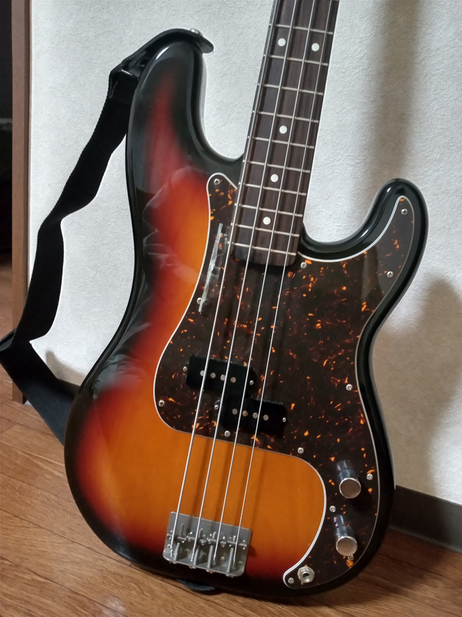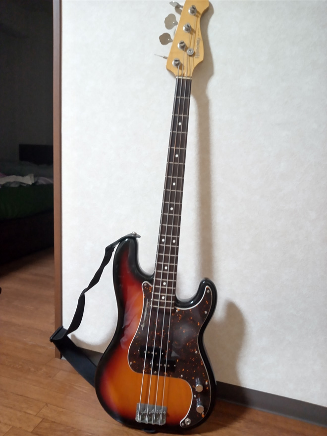 その後、色々楽器としてのベースぉ考える中で『できるだけシンプルに1v,1T位のモノが自分に合っている』と結論。選んだベースは最もスタンダードのPBモデル。フルスケールで20フレット、太いネックで運指も大変!。ショートスケールモデルとはえらい違いですが、五臓六腑に染みる落ち着いた低音に癒やされる日々です。