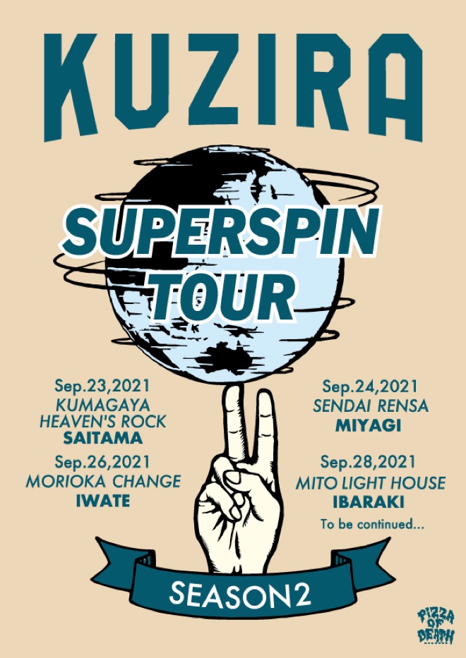 PIZZA OF DEATHのニューカマー“KUZIRA”が9月より、レコ発ツアーのシーズン2となる<Superspin Tour Season 2>を開催することが発表となった。