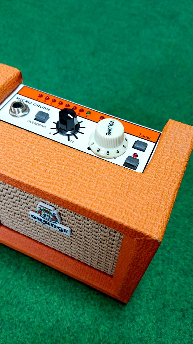 10年くらい使っていた自宅練習用ミニ・アンプが壊れたので探していると、リサイクルショップでOrangeのミニアンプ「Crush MINI」が新品1500円で売られていました。知人からコスパの良いアンプだと聞いていたので、即!お家に連れて帰りました。