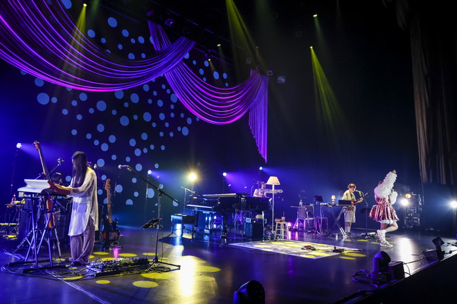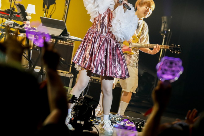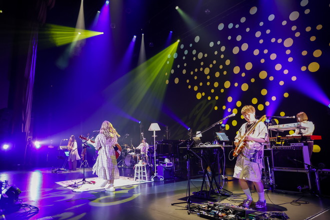 ここからステージには甘いキスの雰囲気が漂い始め、アーバンなグルーブを奏でる「バスタイム」では、お風呂場のようにリバーブがかかった歌声にバンドメンバーがドリーミーなコーラスを被せ、ご機嫌なカントリーポップ「ミッドナイトをかけぬけて」では会場から自然とクラップが沸き起こった。