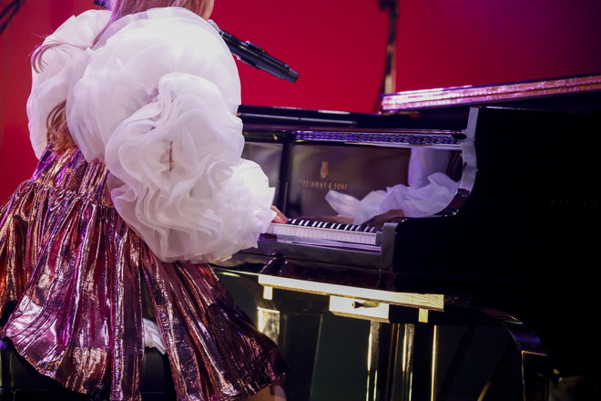 ここで、コレサワはステージ中央に設置されたグランドピアノに移動し、NHK『みんなのうた』に書き下ろした楽曲「愛を着て」をエモーショナルにパフォーマンス。自身でこの曲のためだけに用意されたグランドピアノを弾きながら、弓弾きのベースとともに、家族愛のような大きく温かい愛情で観客を包み込んだ。続けてライブ定番曲の「あたしを彼女にしたいなら」、そして「すべての元カレに捧げます!」と言い放つ「SSW」を勢いよく届け、ニューアルバムを締めくくっていたラストナンバー「オシロスコープ」で、電気や電波のように目に見えない“愛”という感情の揺れをたおやかに表現してツアーの幕は閉じられた。