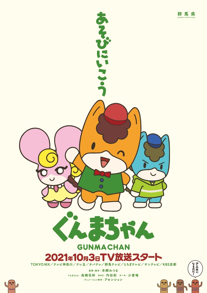 テレビアニメ『ぐんまちゃん』は「ぐんまちゃんはいつだってともだち」をテーマに、群馬県のマスコット・ぐんまちゃんとたくさんの個性的なキャラクターが自分らしく楽しく暮らしている世界、ひらがな「ぐんま」の物語。約7分のエピソードを3本分まとめて放送する30分番組で、全13回の放送を予定している。
