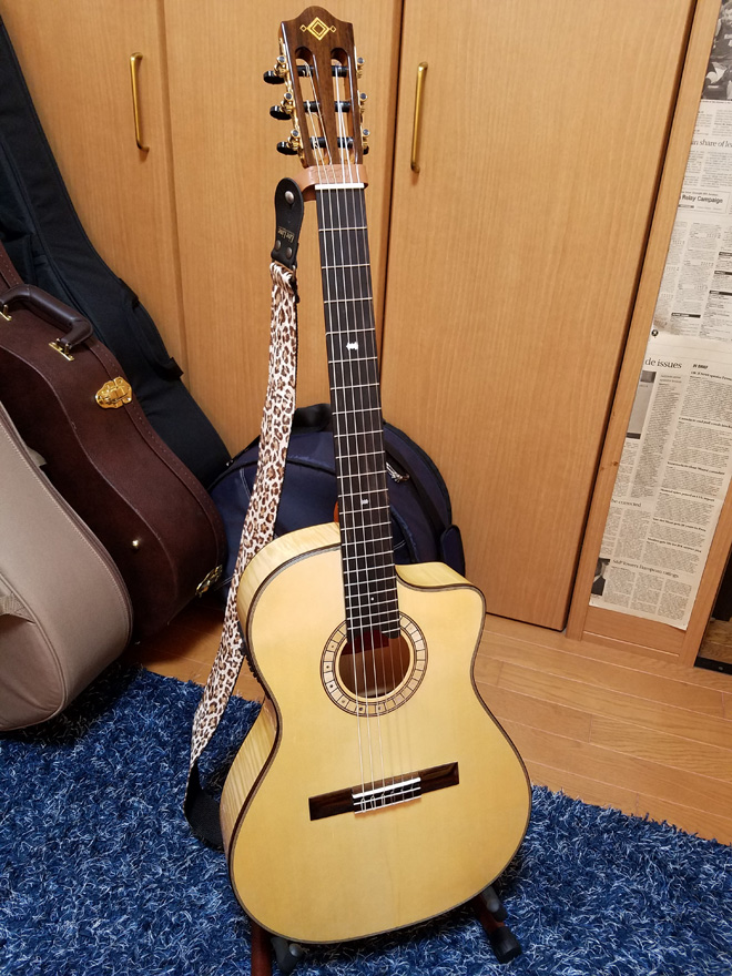 去年からオリジナル曲を作ってボーカルさんに歌ってもらってます。曲によってギターを変えています。ちなみに作曲の時は中古のマルティネスのクラギを使っています。
