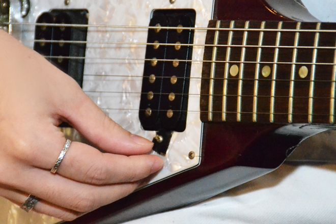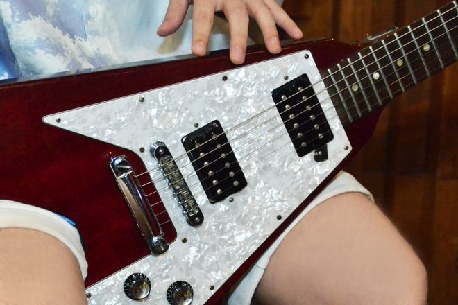 ユタニ:ギターが届いてすぐ弾いてみたんですが、ストラトに比べて生の鳴りがかなり大きかったのがちょっと驚きました。フライングVってこんなに鳴るものなんだと。