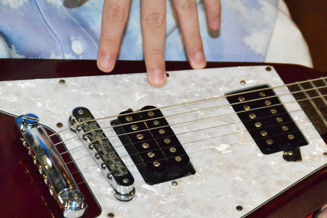 ユタニ:やはり、このキラキラ感、目立ち具合を見てほしいですね。ギラギラ反射するピックガードをつけたりしていますし(笑)。これを持ってステージでも前に行って目立つという、そういう僕のスタイルは今後も変わらないと思います。音についてはこのピックアップのワイルドなサウンド。とくにソロでのワイルドな粘り具合をぜひ聴いてもらいたいですね。