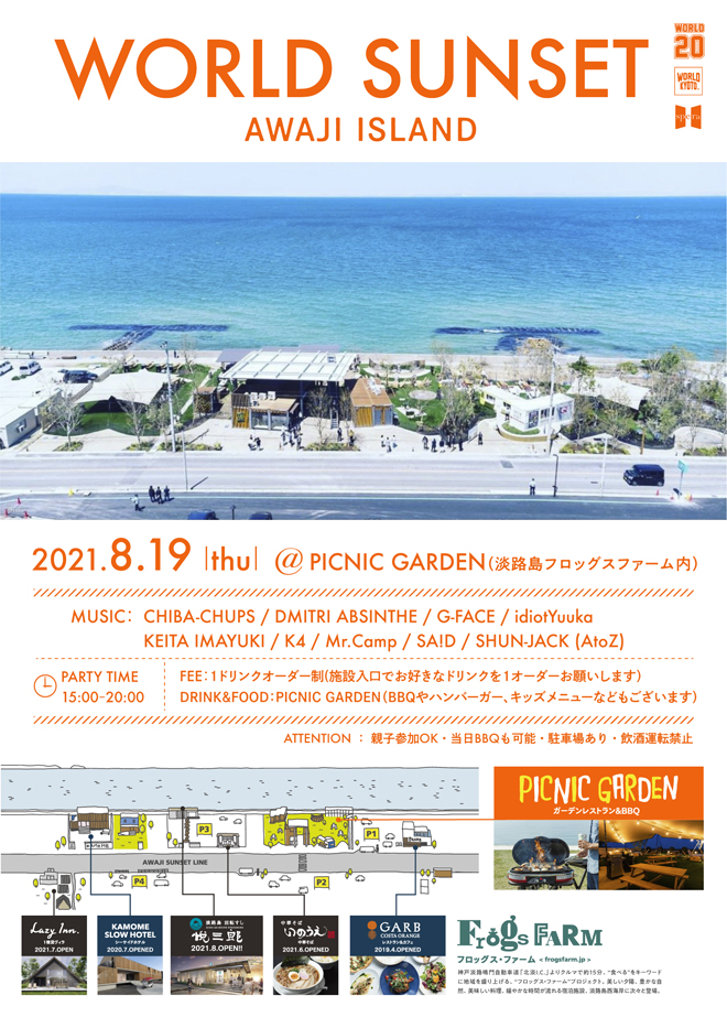 京都WORLDが淡路島でサンセット・パーティ<WORLD SUNSET ーAWAJI ISLANDー>を開催する。