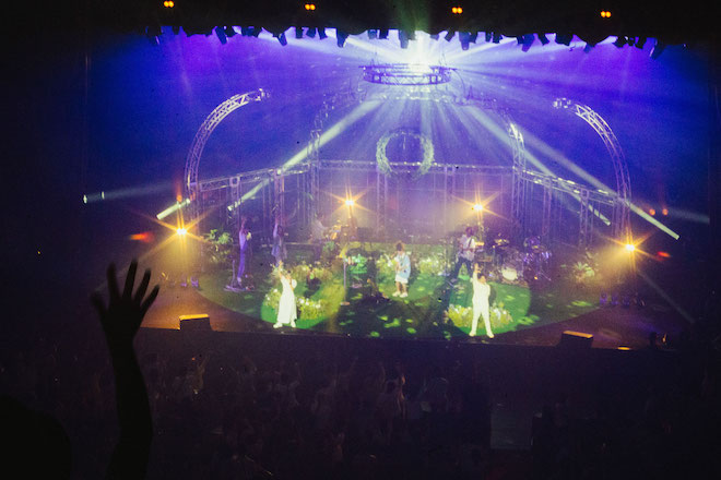 ドラマ「彼女はキレイだった」のオープニングテーマとして現在オンエア中の『夏の午後はコバルト』でライブがスタート。音楽の庭で仲間たちと遊ぶかのように、楽しみながら歌い鳴らすメンバーの姿が眩しい。軽やかなリズムが観客の心を自由にさせるのもあっという間。ミュージックビデオに出演していたP→★も登場し、ダンサーとしてステージに華を添える。