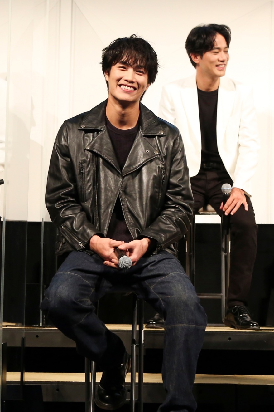 BIRTHDAY BOYSのメンバーで、レスリー・チャンチャンを演じる佐藤は、「僕は前回はラーメン屋のアルバイト役だったんですけど、今回は香港からきたアクション・スターで……」と語ると、SABU監督が「(佐藤寛太が)香港に仕事で行ったときに、ファンに囲まれたことがあると聞いていたので、そういうのを全部出しました」と、キャラクター誕生の意外なエピソードがまた飛び出した。